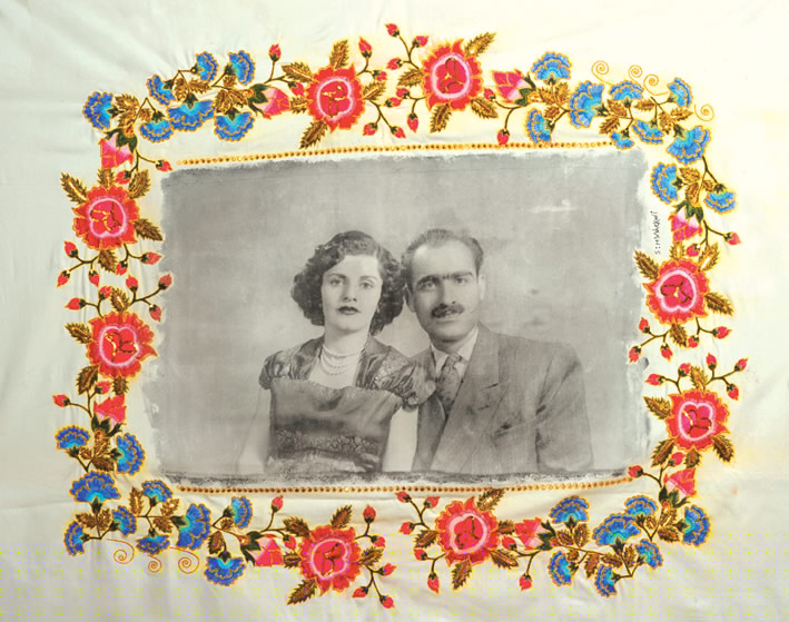 بر روي پارچه كتان همره با قلاب دوزي مي باشد