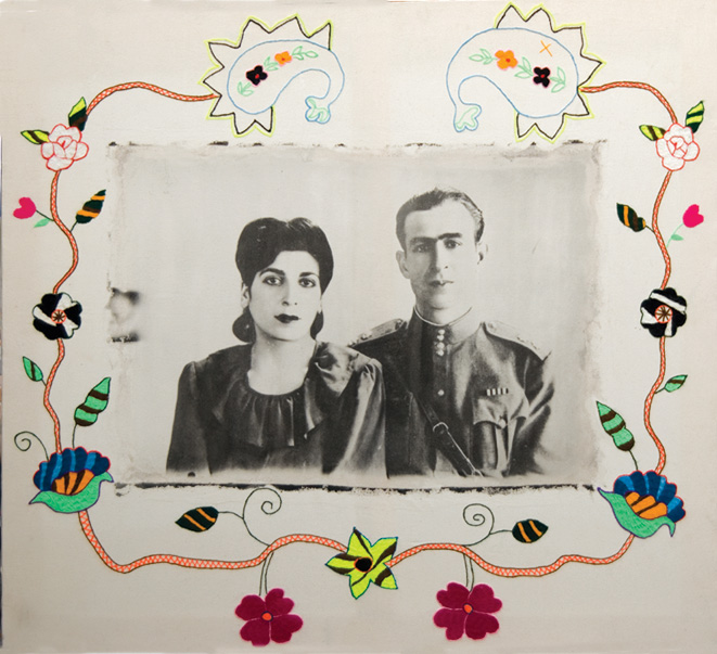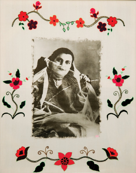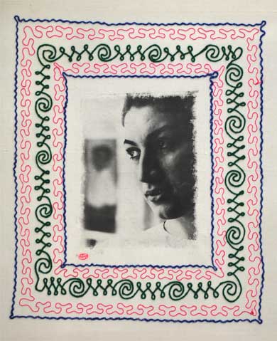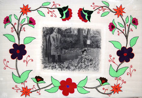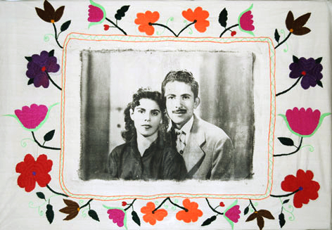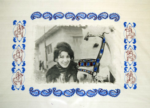 بر روي پارچه كتان همره با قلاب دوزي مي باشد